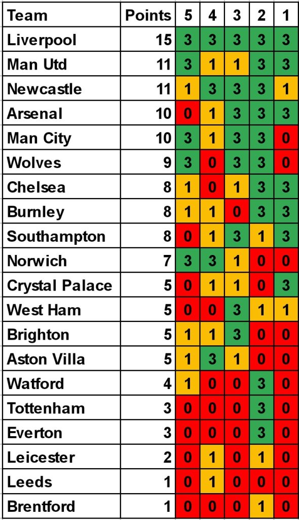 Premier League Form Guide – Last 5 Games to 24th February 2022 Re Premier League 25th Feb 202225th Feb 2022 1 Minute Form table based on the last 5 Premier League games up to 24th February 2022. Source: https://www.premierleague.com/results Share this: Share on X (Opens in new window) X Share on Facebook (Opens in new window) Facebook Like Loading... Related Published by Re View all posts by Re Published 25th Feb 202225th Feb 2022