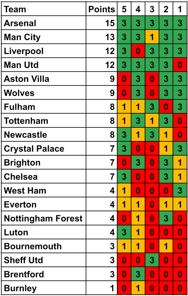 Form table based on the last 5 Premier League games up to 1st March 2023.