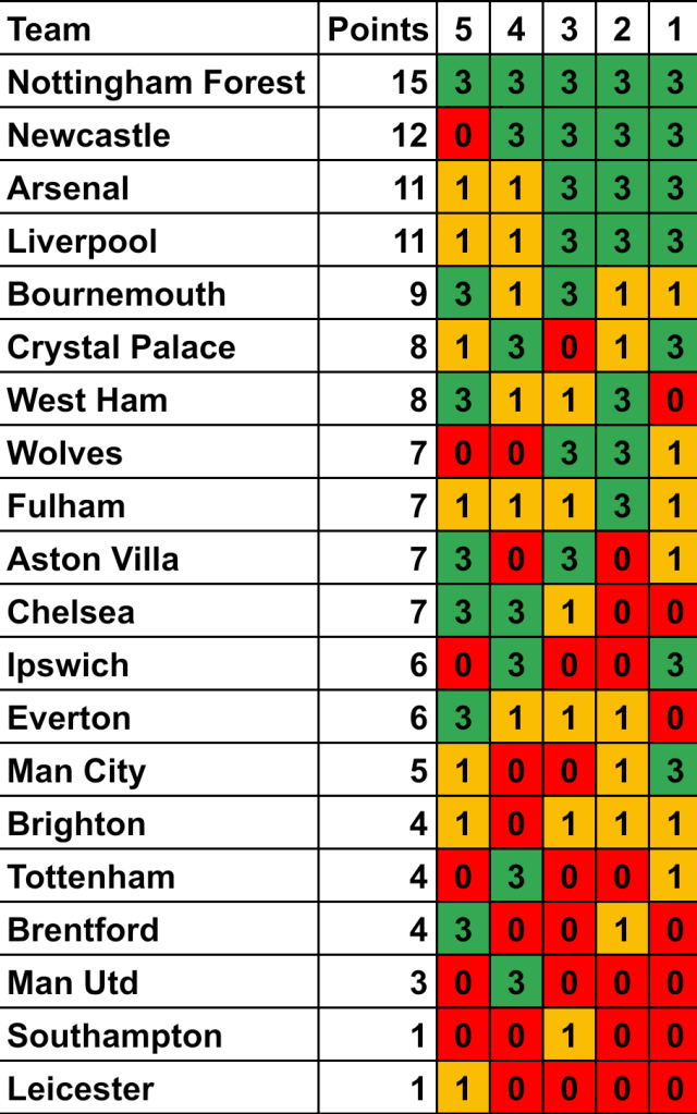 Form table based on the last 5 Premier League games up to 12th February 2025.