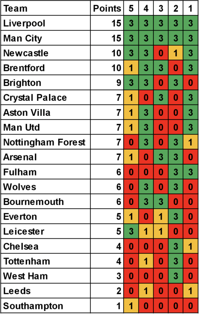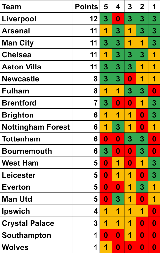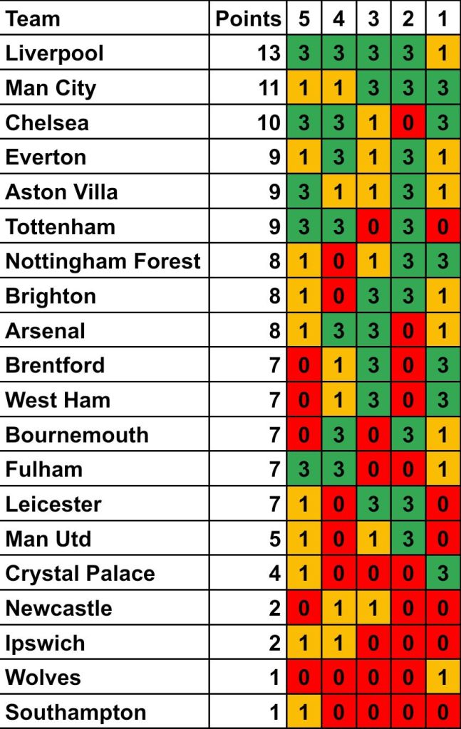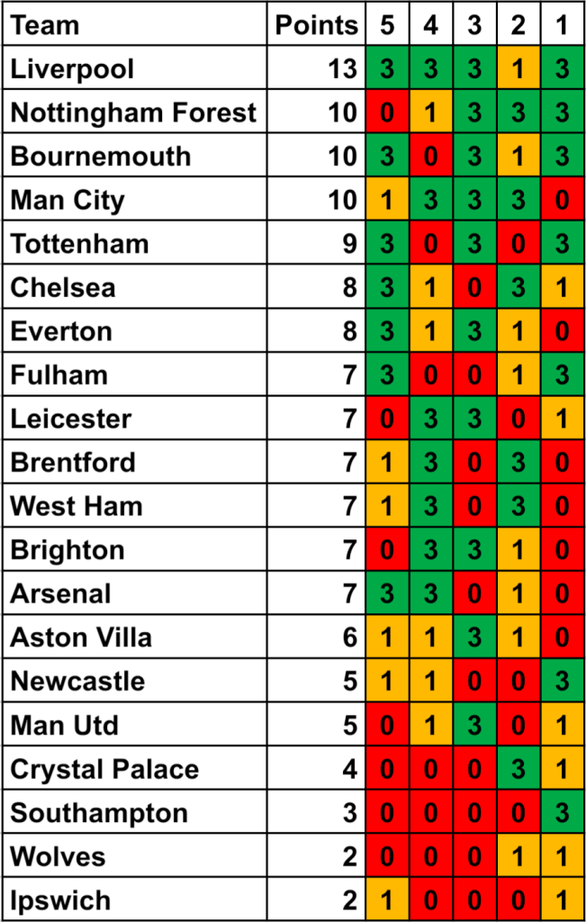 Form table based on the last 5 Premier League games up to 30th September 2024.